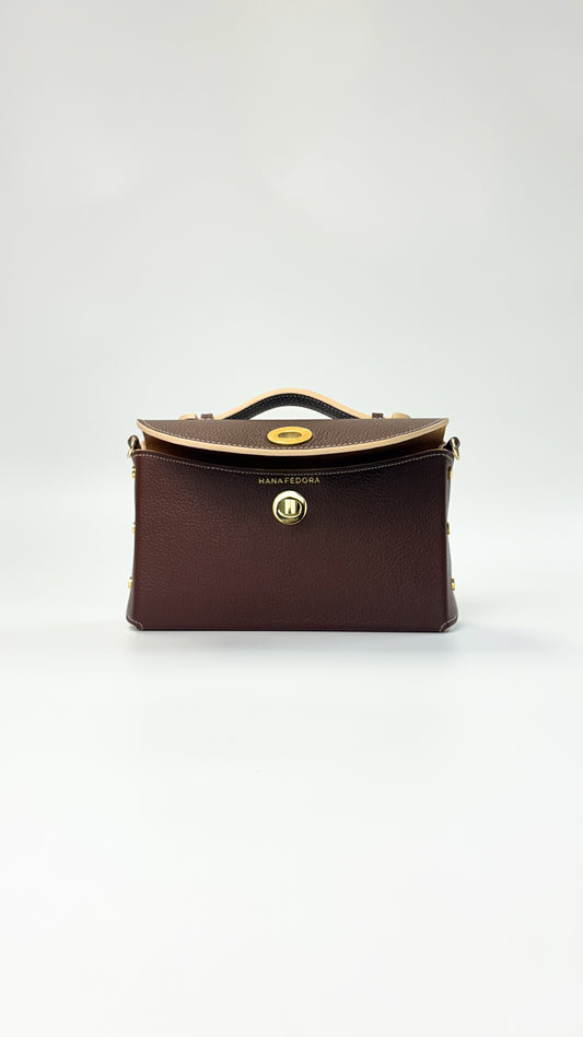 Sumi Crossbody Clutch Bag in Palisander with Gold Lock (with beige edge)