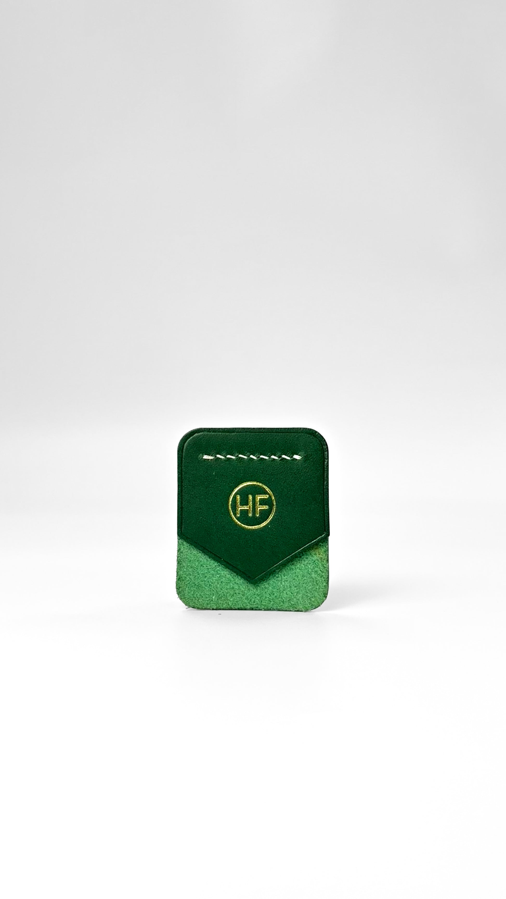 Feature: Corner-slot design for secure page marking, hand-stitched top detail, embossed gold HF monogram