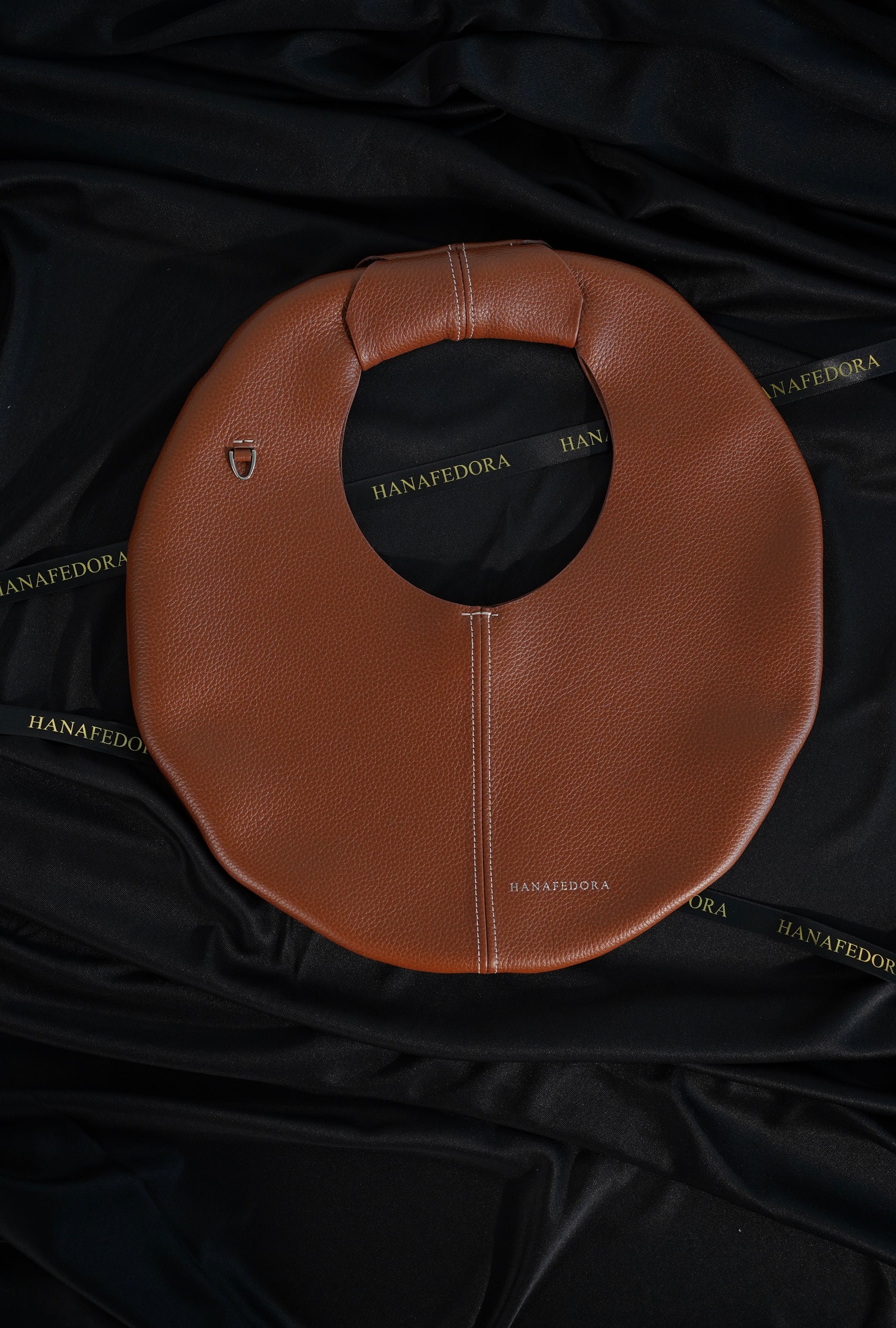 Feature: Circle with D-ring on side. Snap magnet closure.